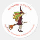 Cute Girly Halloween Witch Broomstick Address Classic Round Sticker