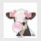The design showcases a cute cow with expressive eyes and pink bows on her ears, adding a sense of charm and cheerfulness to the artwork. The cow is depicted blowing a bubblegum bubble, adding a playful and lighthearted element to the sticker.