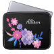 Laptop Case featuring a black background and floral design to accent the custom monogram