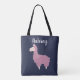 Cute Girly Pink Fluffy Llama & Name Tote Bag