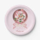 Cute Girly Pink Rococo Shoe Roses Bow Name Paper Plate