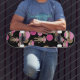 Cute Girly Pink Sock Monkeys Girls on Black Skateboard