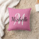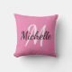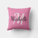 Throw pillow with a pink background and white custom monogram first initial and first name.