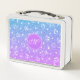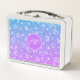 Introducing the Cute Girly Purple Pink Glitter Hearts Monogrammed Metal Lunch Box—a delightful and stylish accessory for back to school. This lunch box features a colourful, pretty abstract fantasy summer design with glittery hearts in shades of pink, purple, and teal, adding a touch of glam glitter and girly sparkle to your child's day. The shimmering sequins and glitter accents create a vibrant and eye-catching look that’s perfect for any young fashionista.