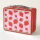Cute Girly Red Pink Retro Strawberry Pattern Metal Lunch Box. Perfect Vintage Red Pink Strawberry Pattern Metal Lunch Box for kids, school or work, lunch, snacks, or any meal.