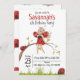 Cute and girly 6th Birthday invitations featuring an adorable girl ladybug sitting on a tree branch, other two ladybugs company in this whimsical and magical garden. Personalise this beautiful birthday party invitation with girls name and party details such as date, time and venue.