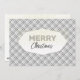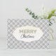 Cute Glitter Merry Christmas Tartan Grey White Holiday Card