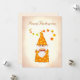 Cute gnome holding a pie and colourful fall leaves Thanksgiving greetings. All text can be personalised.