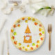 Cute gnome and holiday Fall leaves Thanksgiving Party Plate. Text can be personalised. Ideal for any event during Autumn season.