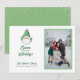 Fun and festive, these photo cards are the best way to send warm wishes this holiday season. The design features a cute green garden gnome who looks like Santa with snowflakes on the back and front. Swap out your picture for the template and add your family name and the year.