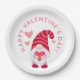 Cute Gnome Holding a Heart Valentine's Day Paper Plates. Personalise with your greeting.