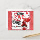 For Valentines Day this year, anyone would love to receive this cute little love bug postcard featuring an adorable gnome illustration with a ladybug and polka dots and red marble background!