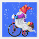 Cute Gnome with Bike and Gift Christmas Wallpaper