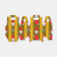 A very cute golden Christmas favour box featuring a pattern of adorable Christmas gnomes (or elves, or Santa's helpers!) across a gold background, surrounded by Christmas signs wishing all a very Merry Christmas, candy canes and striped Christmas stockings.