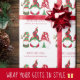Cute personalised folded holiday card featuring three Scandinavian-style gnomes with seasonal red and green hats and tunics under red, green and gold snowflakes. Personalise the "Merry Christmas" greeting (e.g., "Happy Holidays") in fun red typography and your name at the bottom. Add a message inside or leave blank.
