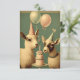 Birthday card featuring two cute goats having a birthday party with cake, balloons and party hats. The perfect way to show someone you care, this cheerful design is sure to bring a smile to the recipient's face.
