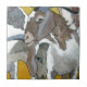Cute goats cuddling, Originally a mixed media piece, this was acrylic, watercolor, pen and ink, on crumpled tissue, that was glued to a canvas. It was painted by me. The picture depicts two cuddling goats, these goats love each other and spend all day nuzzling. I love goats so it was a real please to paint this piece. The main colours in this cute goat painting are, yellow, sand, and light brown, with a black outline. lovely goat design for kids or adults.