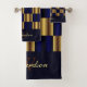 Cute Gold And Royal Blue Squares Geometric Pattern Bath Towel Set