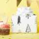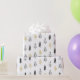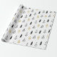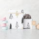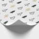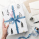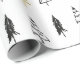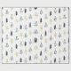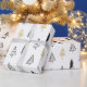 This cute Christmas gift wrap features a white background with gold and black trees in a Scandinavian style.