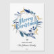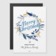 This elegant Christmas card features a wreath with golden reindeer and blue and grey greenery. Merry Christmas is written in a beautiful handwritten script. Personalise this card by adding names and year.