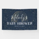 Cute Twinkle Twinkle Little Star Baby Shower banner, featuring a trendy navy blue background, a faux gold abstract rainbow, a scattering of gold stars and a modern template designed with white calligraphy script and cursive text that is easy to customise.