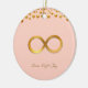 Cute golden infinity symbol and polka dots on coral pink background ceramic ornament. Love light and joy text can be personalised.