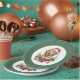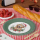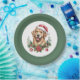 These Golden Retriever Christmas paper plates are the perfect addition to any family dinner. This design is complete with an adorably cute golden retriever watercolor graphic. The golden retriever dog is wearing a Santa hat and is surrounded by various Christmas decorations. The background colour is green. Enjoy the holiday!