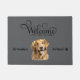 This Golden Retriever dog doormat is the perfect gift for any dog lover. This design is complete with the words "Welcome to our home", a place to add your name and your dog's name, and an adorably cute Golden Retriever watercolor graphic. Enjoy!