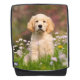 Golden Retriever puppy in a meadow of Cuckoo Flower. He is such a cute Goldie, I had a lot of fun taking pictures of him. Golden Retrievers are very smart and loyal dogs. This rugged backpack is a gift idea for dog and pet lovers. A puppy-eyed doggy photo taken by Katho Menden. http://www.zazzle.com/kathom_photo
