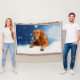 Cute Golden Retriever Dog Sitting Snow Stars Blue background