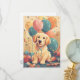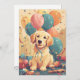 Celebrate someone special with this adorable golden retriever puppy birthday card featuring colourful balloons. Perfect for any animal lover! All of our cards can be customised to your liking by pressing the "Edit Design" button before adding the item to the cart.