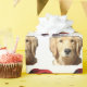 A Cute Golden Retriever wearing a Santa Claus hat for Christmas