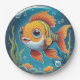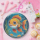 Cute Goldfish Swimming Underwater with Bubbles Paper Plate