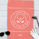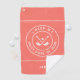 This coral-coloured golf towel is perfect for golfers who want to add a touch of humour to their game. It features crossed golf irons with a golf ball bordered with curved text that reads “I NEED MY DAILY DOSE OF IRON!” in a fun modern white font accented with two white circular borders and two white stripes. You’ll also find a simple-to-use template to personalise either name or initials.