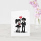 This cute goth greeting card features an adorable dark-romance couple with classic gothic style—black outfits, combat boots, blood-red roses, and a heart balloon for the perfect mix of sweet and spooky.