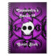 Super cute gothic skull Sweet 16 spiral bound note book with a damask motif in black on a background of purple with pink undertones stripes. Decorated as a guest book, this notebook features a thin but very glossy cover. Add your name to it or change the text to suit your needs.