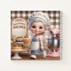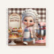 Cute Grandma and Dessert Recipes Notebook is a cute grandma wearing a bakers hat and an apron with cakes and a mixer on a brown and white chequered background Recipe Notebooks