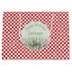 This Cute Grasshopper Insect Birthday Large Gift Bag features all-around red and white chequered background, capturing the essence of a charming picnic scene, with a green grasshopper hidden in the tall grass with ladybugs crawling about. Personalise with a heading and a name.