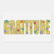 Spread the attitude of gratitude with these fun and colourful affirmation stickers. The design features the word "gratitude" written in decorated text with a mustard yellow background, colourful flowers, and floral henna tattoo patterns.