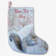 The cute winter wildlife snow scene on this christmas stocking shows a cute little grey squirrel sitting amongst the snow covered woodland shrubs and grasses, he's found a bush covered in red winter berries and is enjoying a nibble on his lucky find. This cute squirrel snow scene art is very evocative of the cold winter months in the English countryside, but its cuteness can be appreciated all year round as well. The winter wildlife picture of this hungry little grey squirrel makes an original little christmas stocking and I'm sure this cute image will bring smiles to friends and family over the holiday season. This customisable christmas stocking can be personalised with you’re own text and picture. The picture on this original postcard is a produced from my original water-colour titled "A Winter Feast.”