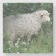 This awesome Stone Coaster features a photograph of a cute fluffy sheep. The sheep is surrounded by wild flowers and long grass and is greedily eating some leaves. It has a thick white coat of wool and a cute black nose.