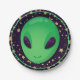 Cute Green Alien On Gold Stars Fun Paper Plate