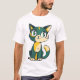 Cute Green and Yellow Cartoon Cat Illustration T-Shirt