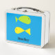 Vibrant and adorable, this artwork features cute green and yellow fishes swimming playfully against a serene blue backdrop, creating a delightful and charming aquatic scene. Personalised with a custom name, it adds a touch of uniqueness to this whimsical gift.