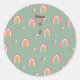 Cute Green Boho Rainbow Birthday Custom Name Classic Round Sticker