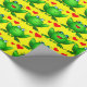 Cute Green Cartoon Frogs Love Hearts Yellow Wrapping Paper