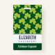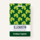 Personalised name badge with a cute repeating pattern of olive green clovers on a dark green background.