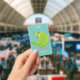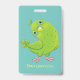Cute green curious parakeet cartoon illustration ID badge