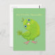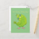 This cute green parakeet is curious and fun! Drawn in happy cartoon illustration style.