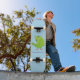 This cute green parakeet is curious and fun! Drawn in happy cartoon illustration style.
